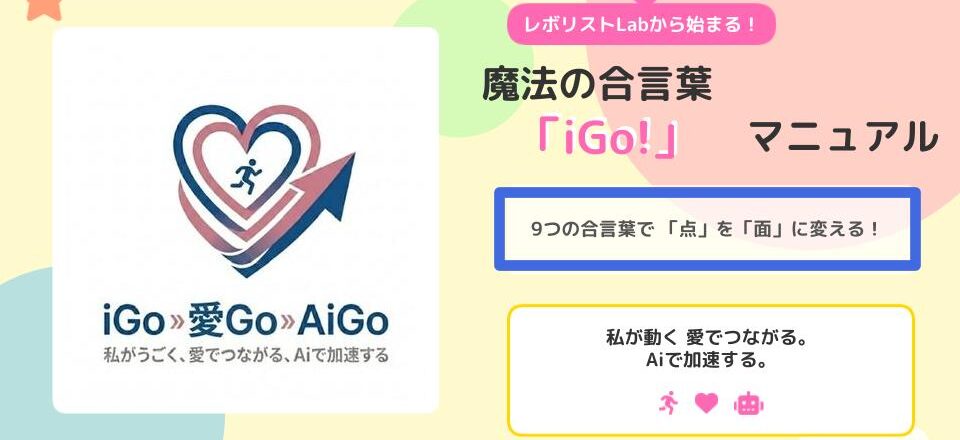 Contents1 レボリストLabってなに? お仕事でもボ … 続きを読む 魔法の合言葉「iGo!」9つの合言葉で「点」を「面」に変える