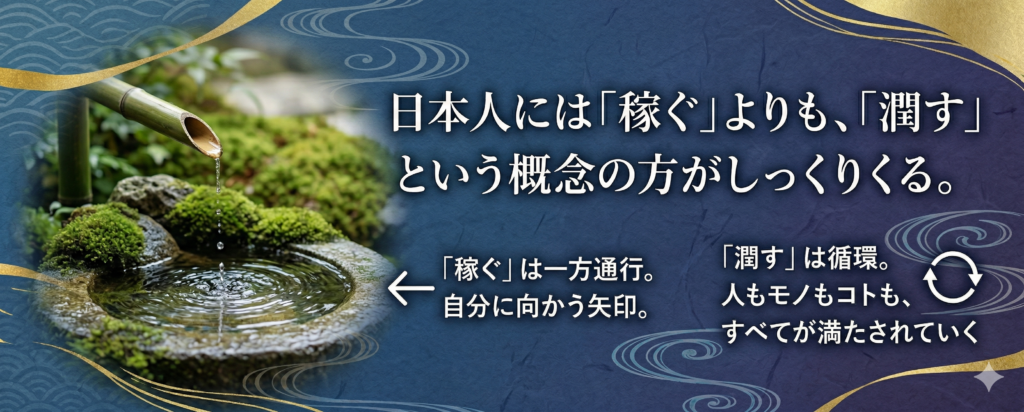 日本人には「稼ぐ」よりも、 「潤す」 という概念の方がしっくりくる。